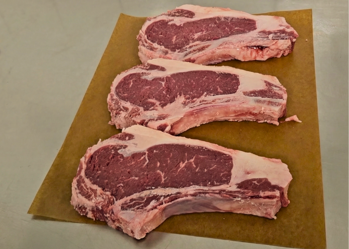 Lækre, saftige oksekoteletter skåret af dansk krogmodnet højreb. Kødet er modnet på klassisk vis, hvilket giver en ekstra dyb smag, flot mørhed og masser af saft i kødet.