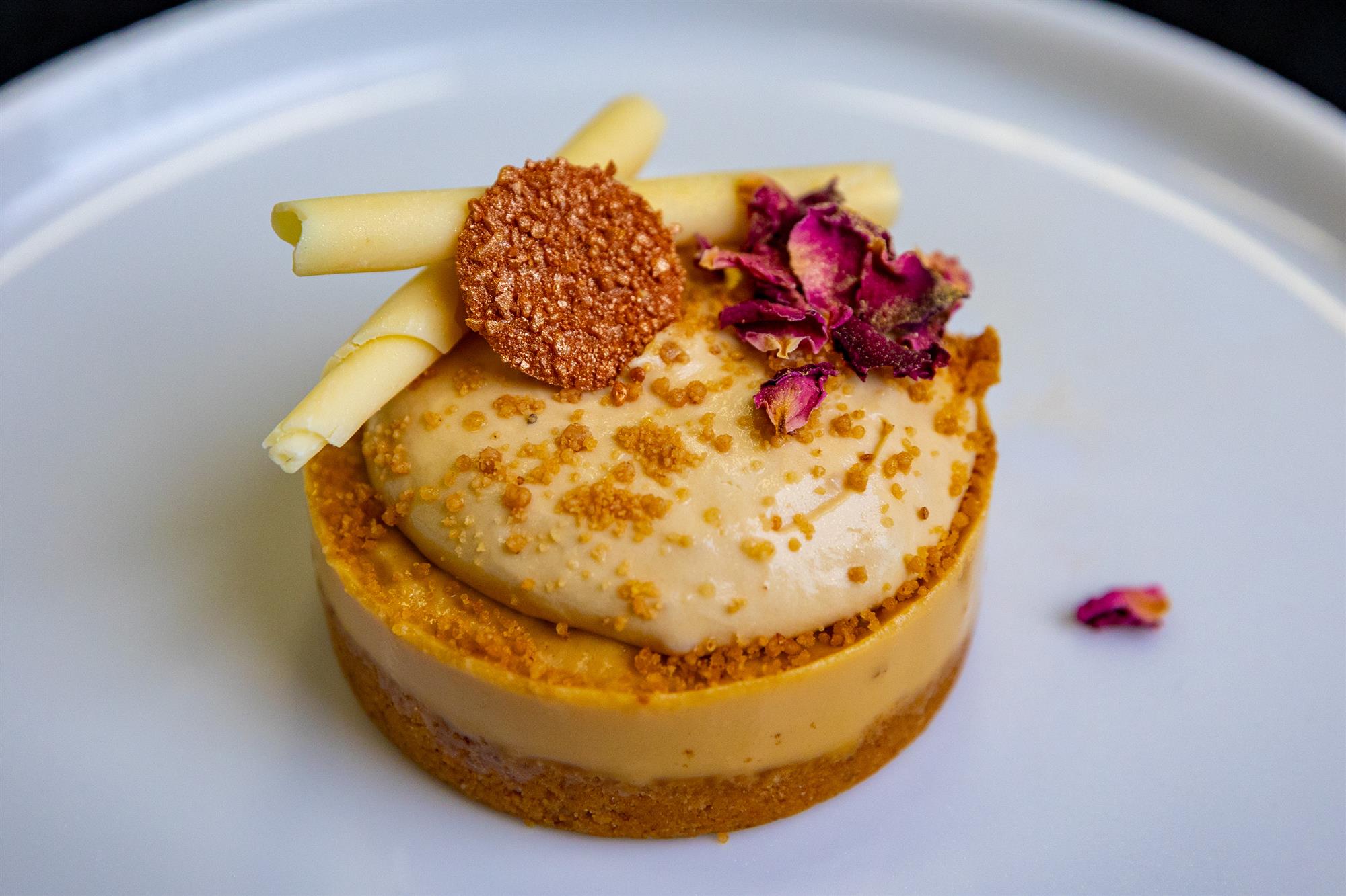 Håndlavet Caramel Delight: sprød kiksebund med blød karamel, toppet med silkeblød karamelmousse.